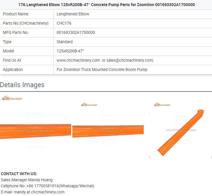 - 176.Lengthened Elbow 125xR200B-47° Concrete Pump Parts for Zoomlion 001693302A1700000