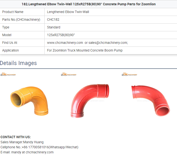 - 182.Lengthened Elbow Twin-Wall 125xR275B(80)90° Concrete Pump Parts for Zoomlion