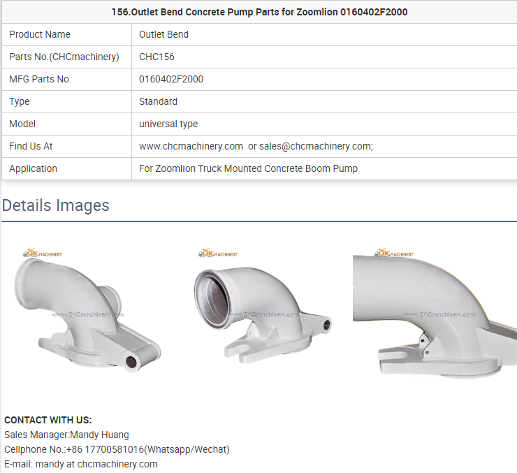 - 156.Outlet Bend Concrete Pump Parts for Zoomlion 0160402F2000