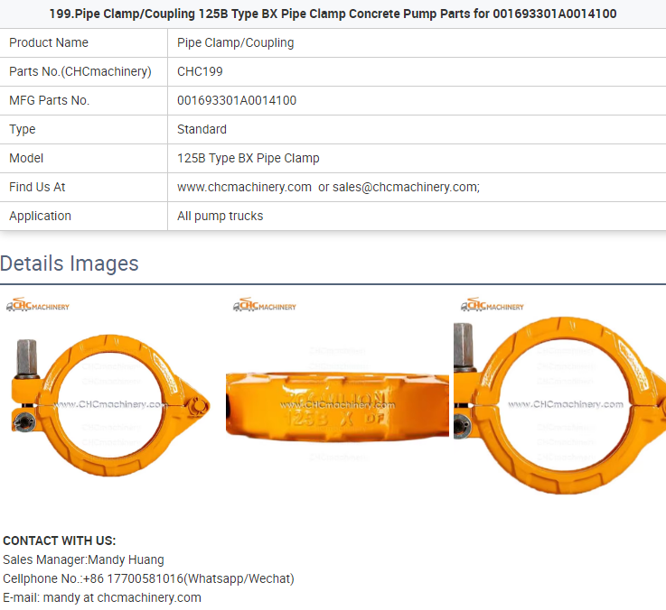 - 199.Pipe Clamp/Coupling 125B Type BX Pipe Clamp Concrete Pump Parts for 001693301A0014100