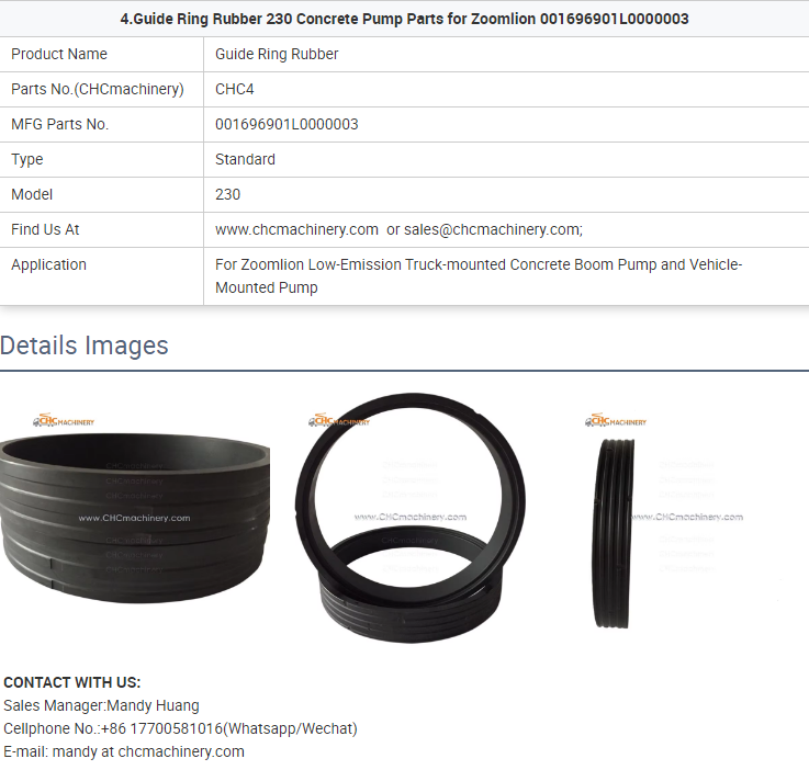 - 4.Guide Ring Rubber 230 Concrete Pump Parts for Zoomlion 001696901L0000003