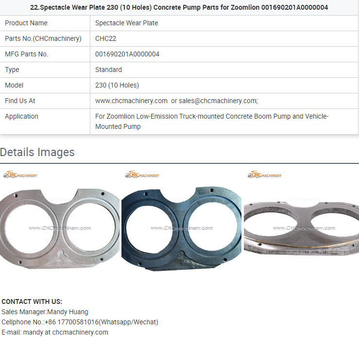 - 22.Spectacle Wear Plate 230 (10 Holes) Concrete Pump Parts for Zoomlion 001690201A0000004