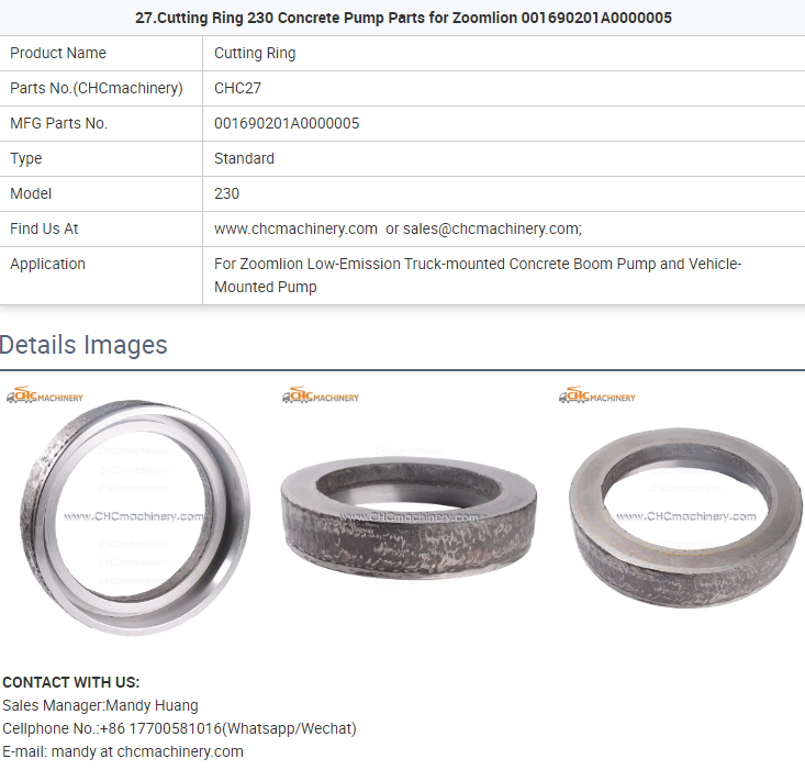 - 27.Cutting Ring 230 Concrete Pump Parts for Zoomlion 001690201A0000005