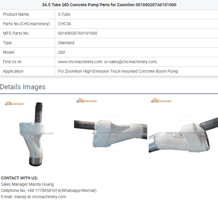 - 34.S Tube 260 Concrete Pump Parts for Zoomlion 001690207A0101000