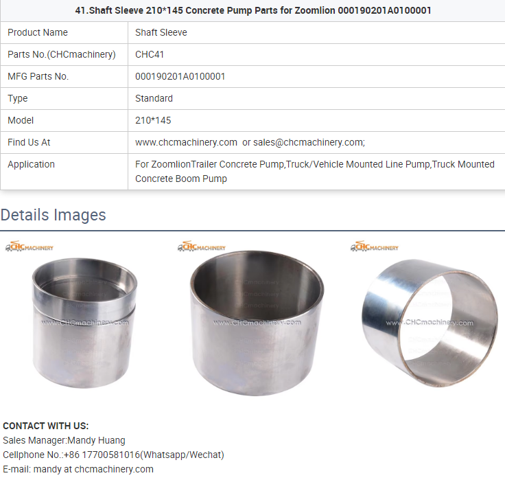 - 41.Shaft Sleeve 210*145 Concrete Pump Parts for Zoomlion 000190201A0100001