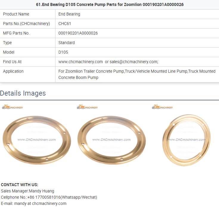 - 61.End Bearing D105 Concrete Pump Parts for Zoomlion 000190201A0000026