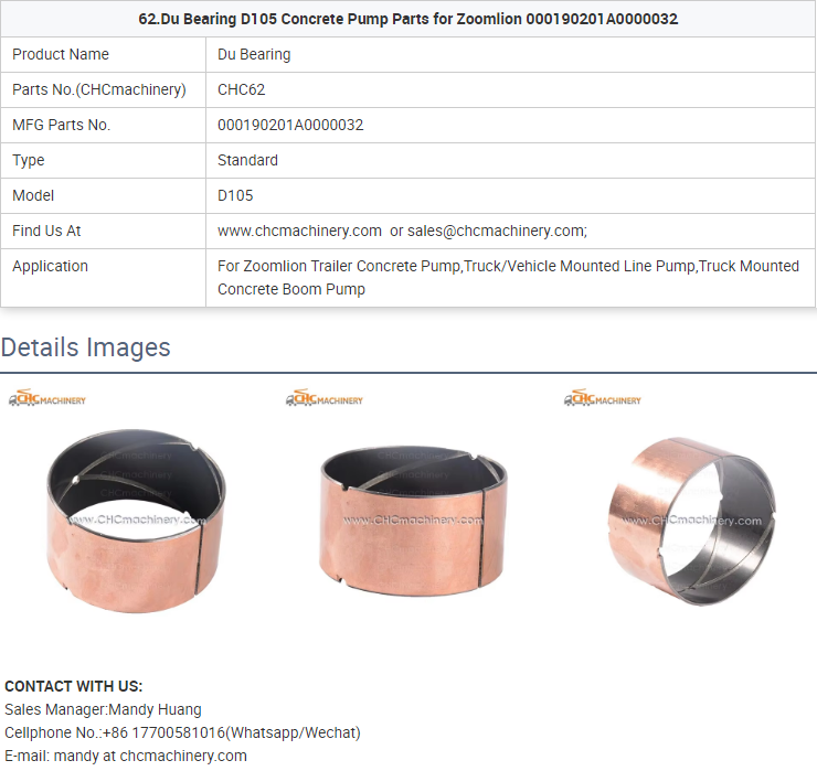 - 62.Du Bearing D105 Concrete Pump Parts for Zoomlion 000190201A0000032