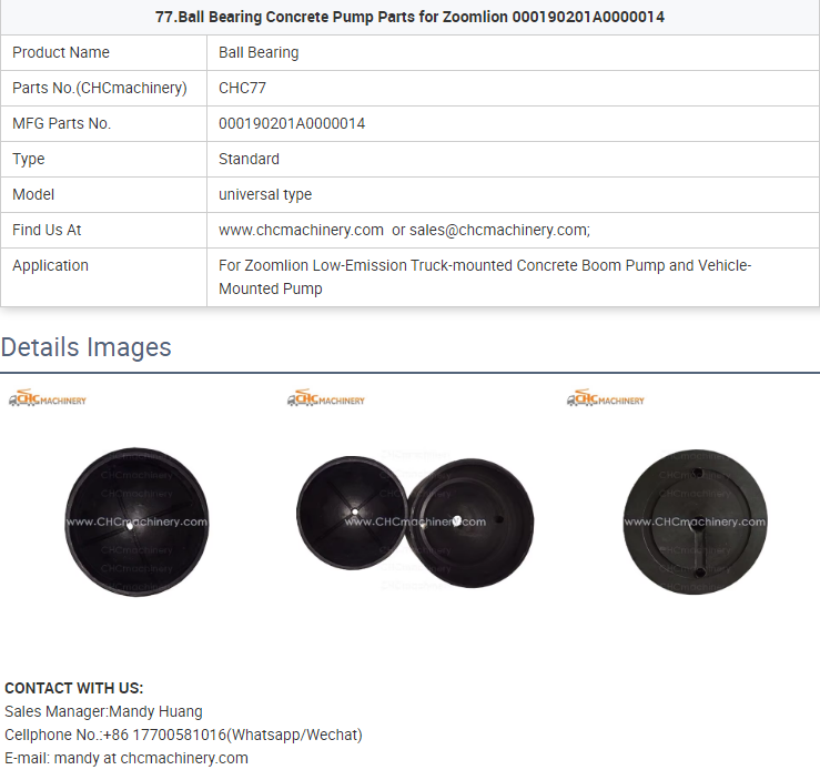 - 77.Ball Bearing Concrete Pump Parts for Zoomlion 000190201A0000014