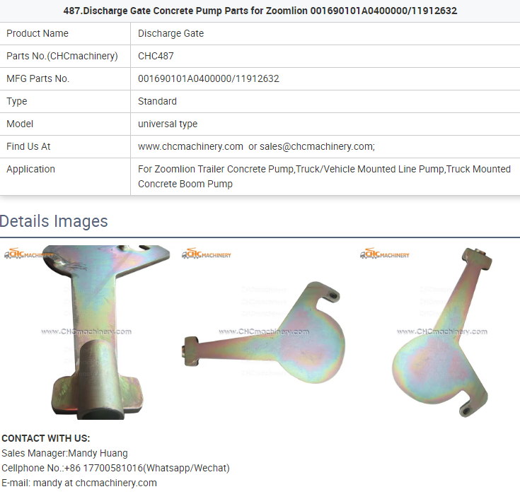 - 487.Discharge Gate Concrete Pump Parts for Zoomlion 001690101A0400000/11912632