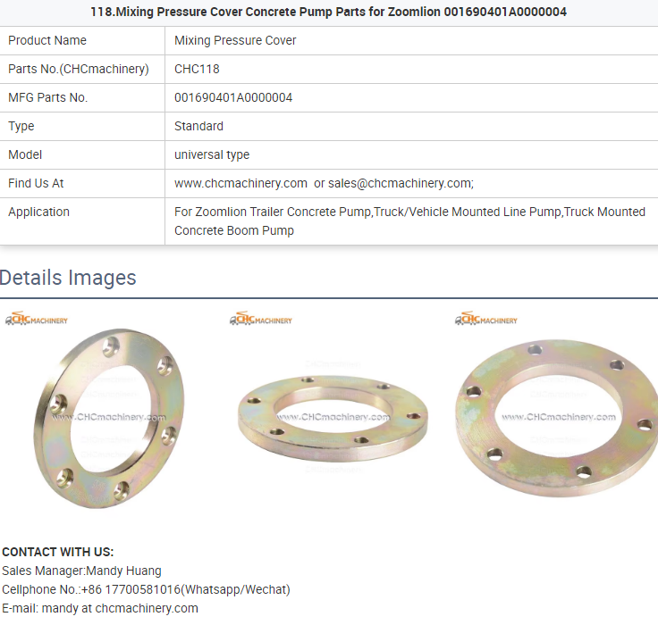 - 118.Mixing Pressure Cover Concrete Pump Parts for Zoomlion 001690401A0000004