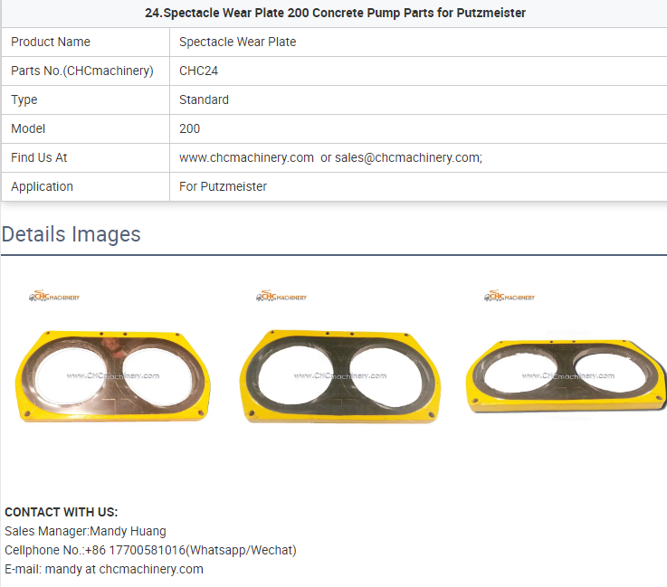 - 24.Spectacle Wear Plate 200 Concrete Pump Parts for Putzmeister