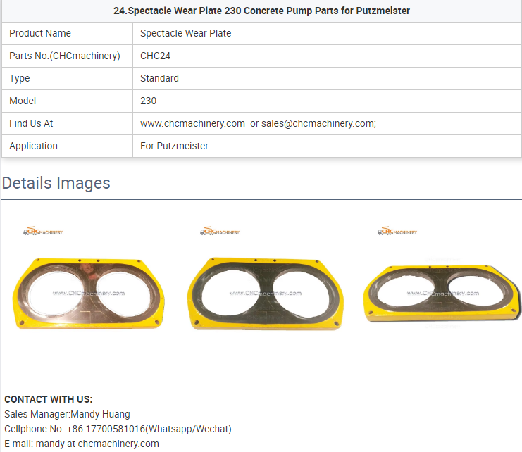 - 24.Spectacle Wear Plate 230 Concrete Pump Parts for Putzmeister