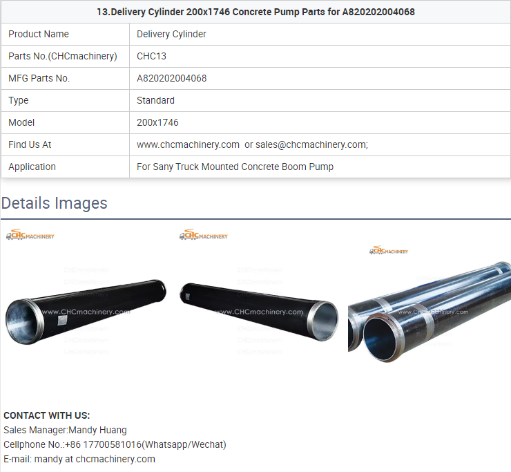 - 13.Delivery Cylinder 200x1746 Concrete Pump Parts for A820202004068