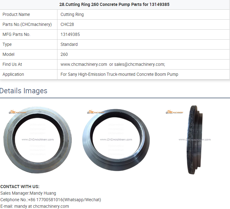 - 28.Cutting Ring 260 Concrete Pump Parts for 13149385