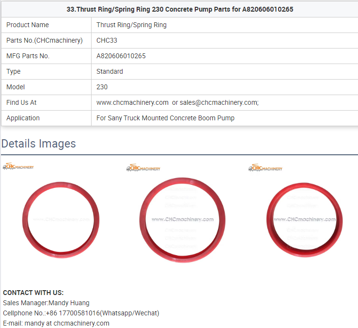 - 33.Thrust Ring/Spring Ring 230 Concrete Pump Parts for A820606010265