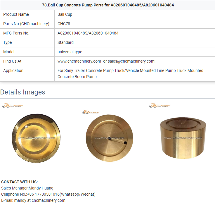 - 78.Ball Cup Concrete Pump Parts for A820601040485/A820601040484